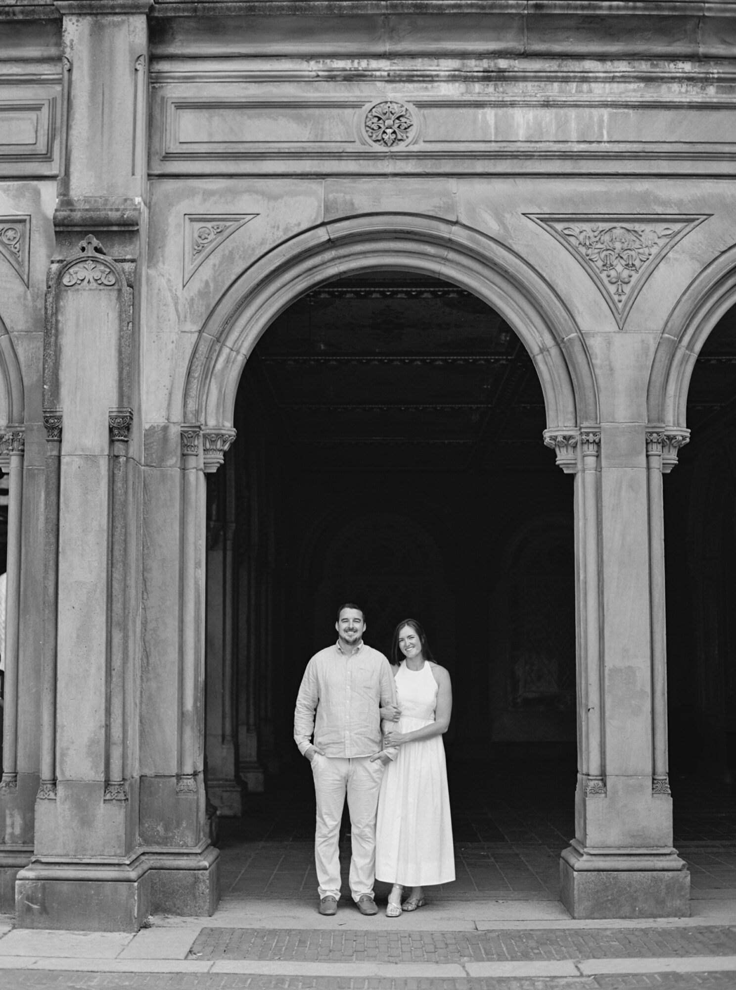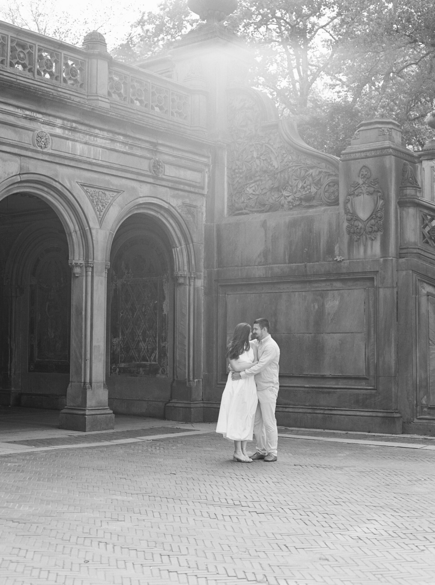 I met with Jane and RJ for the Upper East Side NYC engagement session on a sunny day at the beginning of September. It was the most beautiful day, and Central Park was buzzing with locals and tourists alike soaking in the perfect weather. This was my second time photographing a sweet couple in Central Park, but my last session was at sunrise, so I was really excited to see the park’s light closer to sunset. Boy, it did not disappoint! My love for dappled golden light knows no end, so my heart was the happiest as we explored around Bethesda Terrace and Bow Bridge!