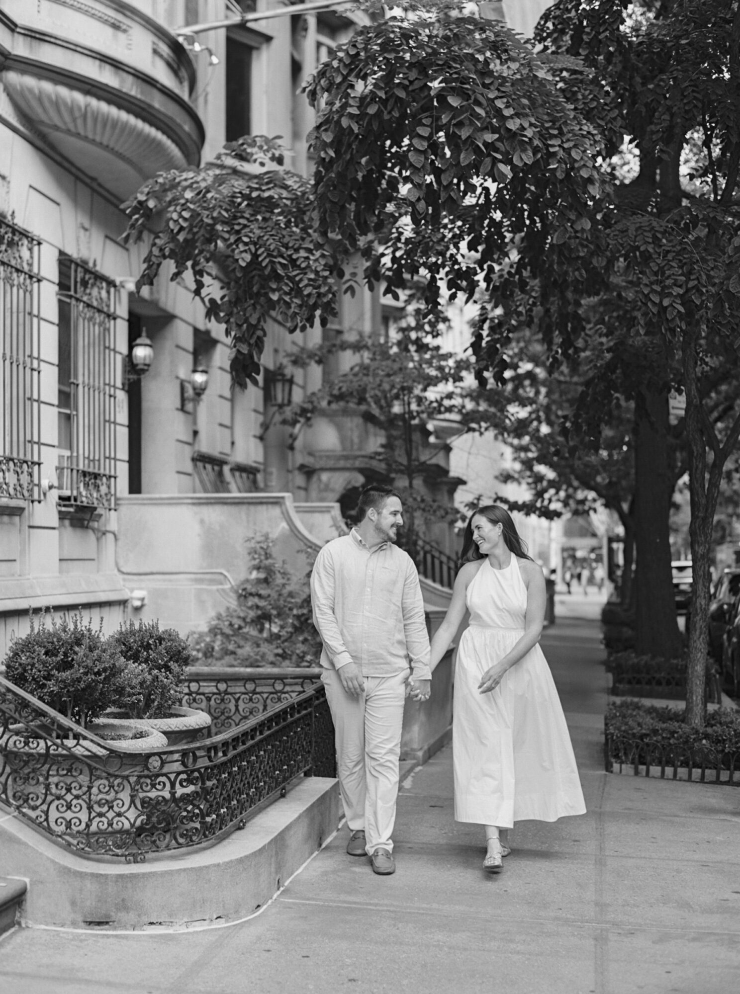From there, the remainder of Jane and RJ’s Upper East Side NYC engagement session took place in their neighborhood, the UES! An area known for its pretty facades and architecture, we cozied up on a quiet (well, quiet by New York standards!) street before heading to one of their favorite spots for a pre-dinner drink. The vibe at Flex Mussels was the perfect finish for their session and had me wishing I could stretch my trip a few more days to eat my way through the city!